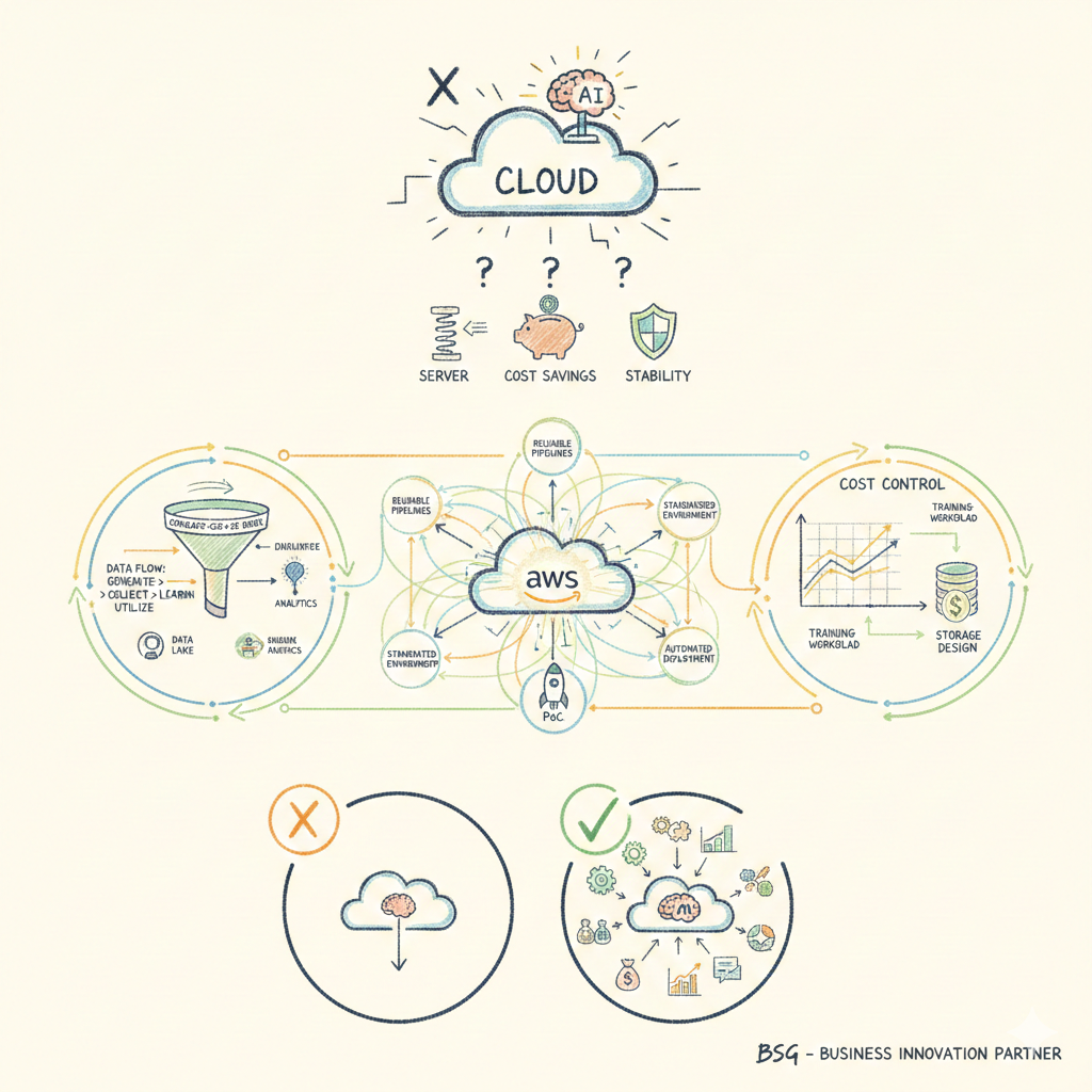 안녕하세요, 비즈니스 혁신 파트너 BSG입니다. 2026년 많은 기업들이 이렇게 말합니다. “클라우드는 이미 도입했고 이제 AI만 얹으면 되는 거 아닌가요?” 하지만 현장에서 확인되는 현실은 다릅니다. AI를 도입한 기업 간 격차는 오히려 더 빠르게 벌어지고 있습니다. 그 차이를 만드는 핵심은 AI 모델의 성능이 아니라, 클라우드를 바라보는 관점입니다. 이제 AWS는 단순한 IT 인프라가 아니라 AI 성과를 결정짓는 비즈니스 플랫폼으로 진화하고 있습니다. AI 시대, 기존 클라우드 전략이 더 이상 통하지 않는 이유 기존 클라우드 ...